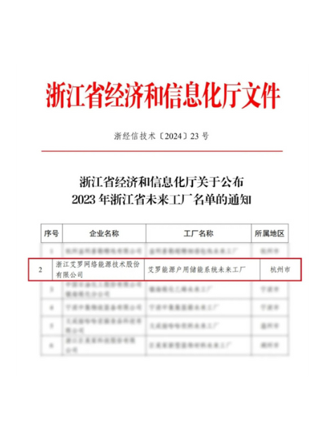 2024:“304am永利能源户用储能系统”上榜浙江省未来工厂